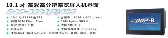 如下圖所示,HMI初步選用臺(tái)達(dá) 高彩高分辨率寬屏人機(jī)界面 質(zhì)量可靠,性能穩(wěn)定,功能強(qiáng)大,性價(jià)比高。支持網(wǎng)絡(luò),串口等多種通訊方式。在整個(gè)網(wǎng)絡(luò)搭建的時(shí)候,方便靈活。