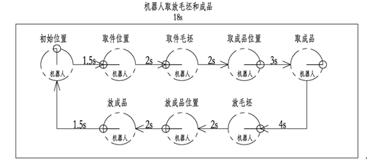 取成品2s——搬運成品2s——疊放成品4s——運動直取毛坯位3s——取毛坯2s——