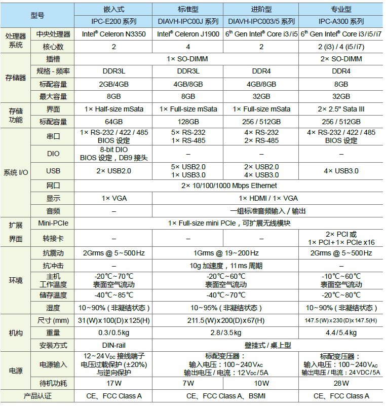 高性能、高可靠、密封無風扇的工業(yè)計算機,板載Intel? Celeron N3350/J1900 & Intel? Core Processor i3/ i5/ i7 處理器,***大8GB RAM 內存,整機具有豐富的 I/O 接口。支持Windows 7/8/10、Linux等操作系統(tǒng)