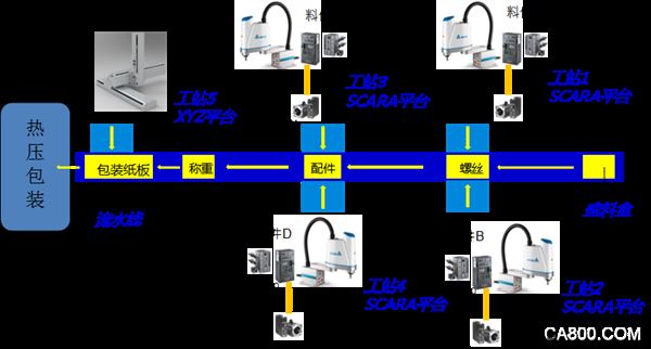 臺達為某大型DIT家具商的螺絲檢測包裝生產線提供SCARA機器人、視覺檢測系統(tǒng)及總線控制架構,取代人力裝盒及檢查,不僅展現(xiàn)出臺達產品在自動分揀-包裝領域的完整解決方案,更確保客戶家具螺絲配件的產品質量,提高螺絲配件的出貨速度。