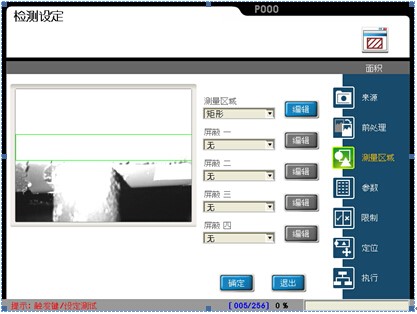 在該項目中,客戶需要檢測定位銷是否插入到車底盤下的定位孔中。檢測思路是用強光把定位銷和車底盤連接部分打亮,然后用面積工具計算綠色工具框內的黑色像素數(shù)。