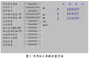 圖3中,用戶可以手動設置鉆孔相關參數(shù),以符合不同工件的要求。另外此頁面是按照客戶需求進行修改,真正做到為客戶“量體裁衣”地符合客戶的習慣。