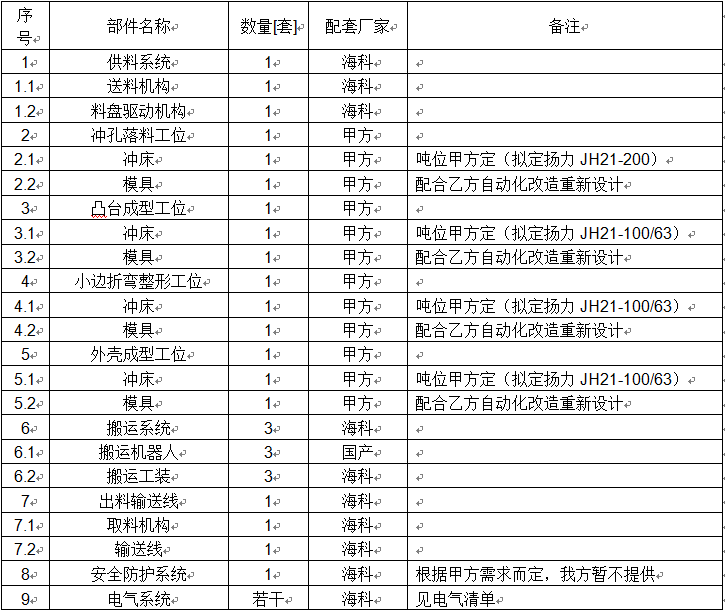此生產(chǎn)線滿足下料外形尺寸315×195×0.5mm規(guī)格的外殼成型工作,對于其他規(guī)格產(chǎn)品的適應(yīng)性需要我方技術(shù)確認(rèn)。參考圖片如下: