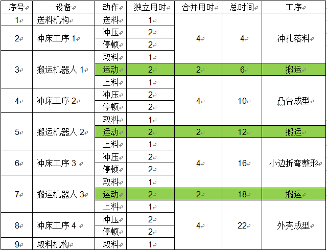 2) 由于各設(shè)備均為獨(dú)立運(yùn)行,耗時(shí)為4s,故生產(chǎn)線的生產(chǎn)效率為4s/件。