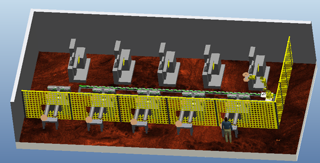 此系統(tǒng)由上卸料機器人、上卸料機構、自定心裝置構成。用于實現(xiàn)成組毛坯的分揀、成品成組疊放、成組毛坯及成品的輸送、單件毛坯及成品的搬運及取放件機器人抓取工件之前對工件的自動定心。