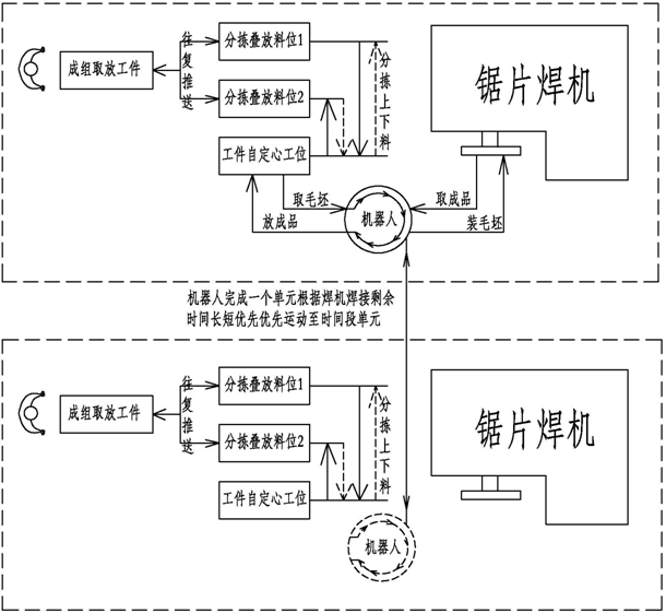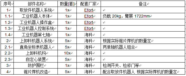 固定單元:鋸片焊機 + 上卸料機器人系統(tǒng) 數量五套(由實際鋸片焊機數量決定)