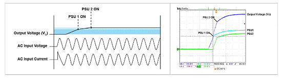 當(dāng)兩個(gè)電源串聯(lián)后,會(huì)出現(xiàn)一種可能,開機(jī)時(shí)間及上升時(shí)間短的電源會(huì)首先開機(jī),這一現(xiàn)象稱為“隨機(jī)開機(jī)”。如圖6