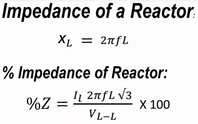 通過(guò)電抗器的電壓降與線電壓之比,稱為電抗率,以此表征電抗器的參數(shù)。電抗器的阻抗(impedance)和電抗率(% impedance of a reactor)如圖2公式,典型的電抗率是3%或者5%。
