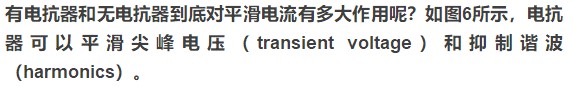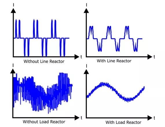 可見(jiàn),通過(guò)電抗器的電流頻率越大,阻抗就越大,這就是電抗器能夠平滑尖峰電壓、抑制諧波的原理(戳藍(lán)字看諧波)。