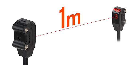 緊湊型傳感器能夠檢測(cè)距離 1 m 的物品。 (對(duì)射型)