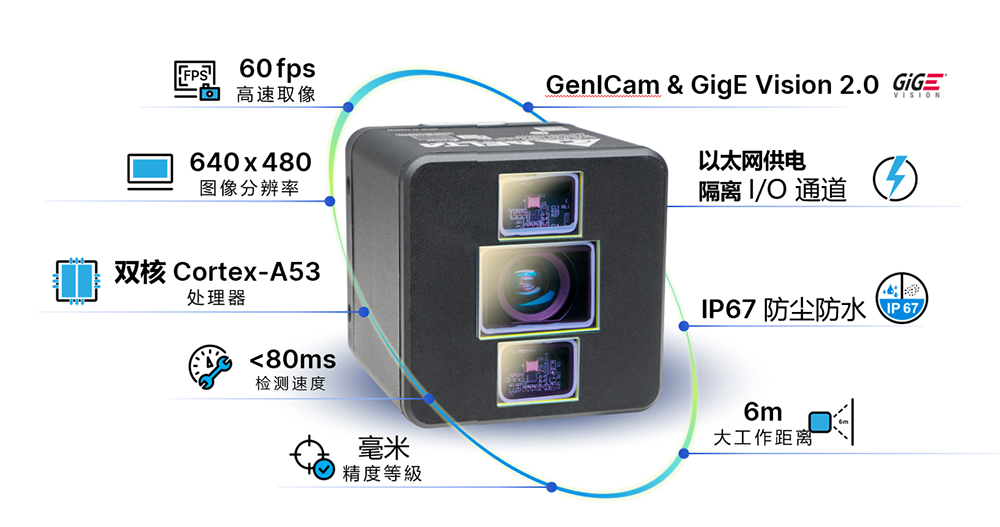 采用 Cortex-A53 雙核心處理器,可于相機中預先進行部分圖像運算,檢測速度小于 80ms